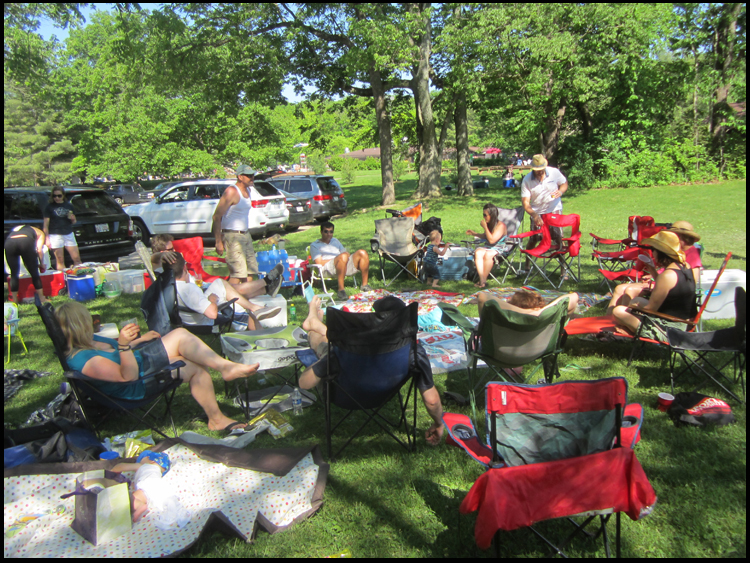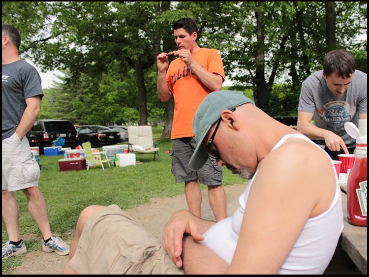 2014 also saw the first official group hike in several years! What started as a group taking the kids across the suspension bridge (aka bouncy bridge, aka shake-shake bridge), turned into a 2+ hour hike of the entire Trail 3! Impressive show of perseverance put on by Mr Grant Berger (4 1/2 yrs) and Jack L, (5 yrs). The ladders were no match for those two! One tradition that didn't quite make a return was the Beer Float... 6-8 people were on the verge of heading to Sugar Valley and aborted the trip at the very last moment. Instead, it turned into a trip to the infamous Flea Market! The first in 10 years for several of the guys! While it was less robust than previous years, there were still some great finds! So how do you recap TR 2014 and not make mention of Crazy Dan's atypical antics? Pain medication following a recent shoulder surgery put him in an interesting prediciment with regards to alcohol... Needless to say, while he was a good boy by some's standards, he had his moments! Ask Julie Berger to share a story about Dan's head meeting our Cabin's air conditioner in the dark of night.... The events that ensued thereafter are sure to become legend told year over year for generations! New faces, including an intense battle for Rookie of the Year, were welcomed to the TR tradition. We also welcomed back a former Rookie of the Year, Brian O'Kelly. We of course, missed some familar faces - most notably, Brian Kelley, who responsibly declined attendance to tend to his studies after a 14 year attendance streak.