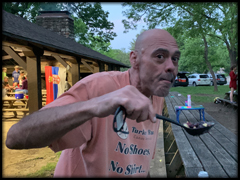 The rest of the weekend went off without a hitch, unless you consider the 3 times Joe E almost died…. The first ‘Triple Crown’ to be earned since D Fash infamously nearly died 3 times at TR 1999. This time, the incidents were different, but no less severe or bizarre. Like Fash in ’99, the first incident occurred during the hike. This time, as the group was descending the ladders, Joe hit a slick boulder as he queued for the ladders – He took an expedited path downward narrowly missing a sharp branch that surely would have impaled him. He came away with some pretty significant wounds, but he managed to get himself back to the grill under his own brute strength and will. As if that wasn’t enough for the day, he then, later that night encountered a racoon in the restroom next to the shelter. As most of you know, yes, there are some friendly racoons around TR, but you come face to face with one in a small space and bad things are bound to happen. Thankfully Joe was able to escape without a physical altercation. To cap his Triple Crown, the next night, as the group gathered round a healthy bonfire next to TR Inn, Joe nearly got torched as he tended to the fire. To think, he was inches from severe injury and perhaps death, was a sobering moment for us all. And finally, in a similar manner to Fash’s 1999 antics, there was arguably a 4th near-death experience. While Fash’s involved Olaf nearly killing him with a canoe paddle, Joe’s was over alleged “alcohol poisoning”. We say this tongue in cheek though, as we don’t actually think he was anywhere near alcohol poisoning, but there’s no denying that Joe has an impressive capacity to crush beers. He had a guardian angel looking over him, no doubt, as he survived all three incidents (and allegedly four) without permanent harm! Let’s hope this is the last Triple Crown our group ever sees! The group otherwise had a great weekend! Attendance was strong as we welcomed back the Heitzman’s, CR & Bethany and the Mann’s. Everyone was on fire with ridiculous quotes – a list as long as any past year! Top Gun movie night in the shelter was a great time. The kids continued to find more independence. Eloise set out at the start of the weekend with a goal of capturing the weekend from the kids’ perspective. She not only captured some great footage, but put together a video within days, rivaling the quality of any of her Father’s previous videos! We’re delighted to have the next generation of TR filmmaker with us!