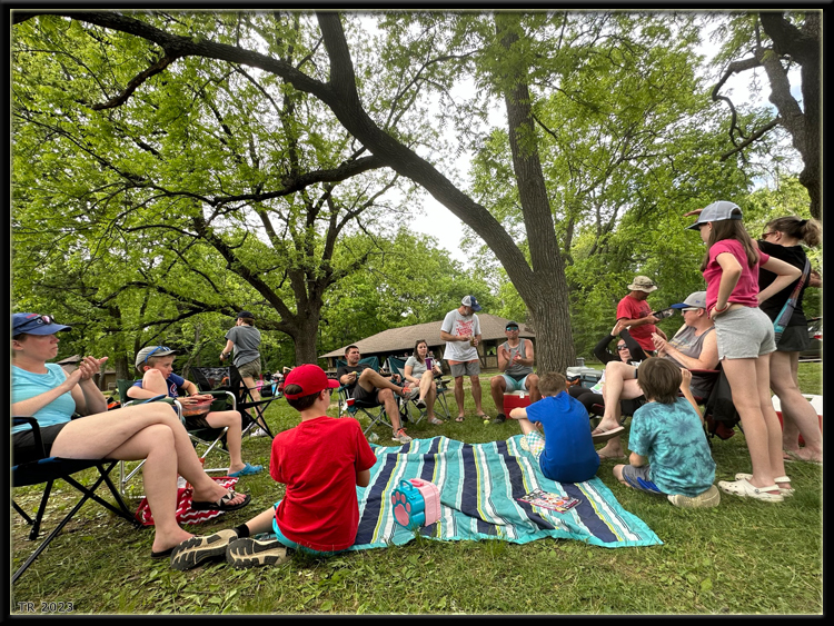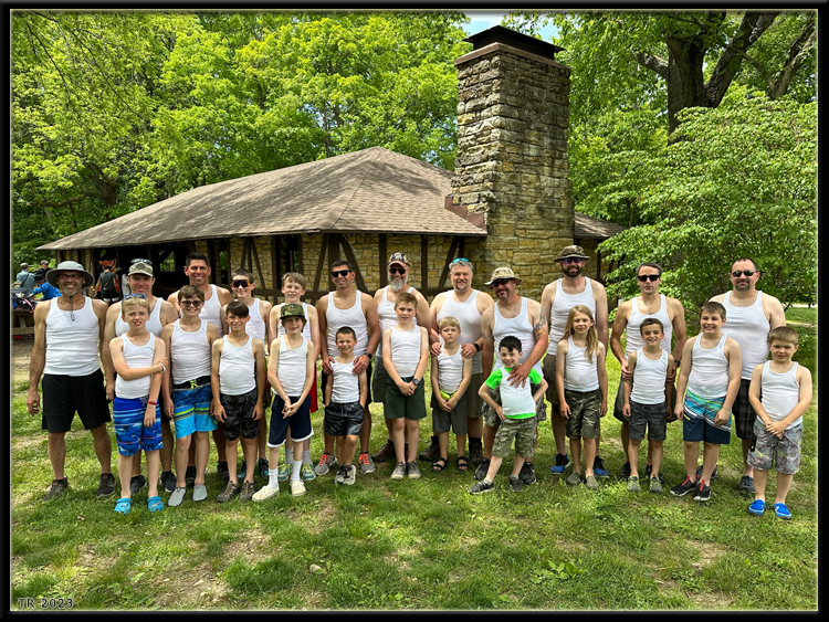 With many of the kids getting older, we noticed two things – They disappeared for longer periods of time…. And they still love being playing in the big cage (tennis courts)! We didn’t exactly take the leap and hand over grilling responsibilities, but their time will come! Saturday’s hike was beautiful, though slightly abbreviated due to the closure of a portion of trail that led to the ladders. While the kids were a bit disappointed by this, I think many of the adults were slightly relieved that we’d avoid the risk of repeating the ‘bowling ball Joe’ incident of 2022. Sunday’s float down Sugar Creek was perfect as well, with the exception of maybe a few boats getting a bit ahead of the group. I suppose, the bigger the group, the harder it is to keep together as a giant conglomerate… we try though… we try! While the Boskovic’s and Koechling’s departed late Sunday afternoon, we were surprised by a brief appearance from Amy Lund, who was unable to join for the entire weekend due to a wedding in Ohio. But she simply couldn’t resist making at least a brief appearance for a beer and a cevap as she passed through Indiana on her way back to Illinois! While schedules can get tough for many of us and some (including me) are forced to make some concessions on arrival or departure times, the efforts made by all to continue this tradition are truly appreciated!