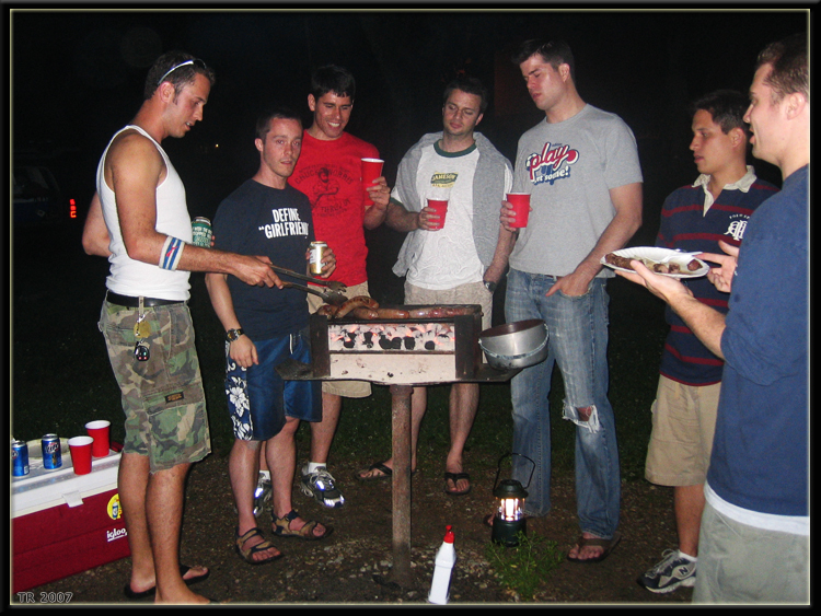 One notable introduction - BAGS. It was a focus of the weekend, with intense competition happening at all hours. Theres something to be said about an activity that can be competitive while holding a solo cup! Friday night, heavy rain forced the group to the main shelter where competition was accompanied by HEAVY drinking and lots of meat. Saturday saw more of the same. Heavy rains, more bags, more drinking and even more meat. This time, out came the Holy Water. A ceremonial passing of a camelback full of Holy Water, led by Jovan is featured in the 2013 Serb Fest Trailer. Youll notice Crazy Dan, in particular, indulging generously on the Holy Water and lets just say it didnt end well. Another notable introduction was the notion of initiating rookies with a bottle of horrendous alcohol This time a bottle of Mad Dog 20/20. Thank Crazy Dan for this! Rookie, Eric Hanson took care of the bottle like a champ and earned himself the nickname Mad Dog along with Rookie of the Year honors. Three years later, rookie Brian OKelly was presented with a bottle of Wild Irish Rose, once again, by Crazy Dan and since its been custom to have Rookie men endure a special alcoholic treat. Sunday, despite the heavy drinking of the previous two nights, the group was in good spirits and feeling ambitious once again. Theres something to be said about the age-old saying that the only hangover one experiences at Turkey Run comes from eating too much and having to loosen your belt! So with great ambition, the group shockingly agreed to an 8 mile kayak trip a considerable step up from the typical 3-4 mile trip the group had become accustomed to in recent years. Fortunately the group also encountered lax staff at Sugar Valley Canoe Trips and they were able to haul plenty of cheap beer to last the full 8 miles. So you can say it was a perfect storm that led to peak alcohol consumption amongst the group. Already on an upward trend since 2003, the introduction of Jovans enthusiastic business school buddy, Mad Dog, set the bar yet another notch higher. It may be safe to say that well never reach this level of consumption again but as the kids get a bit older, I have a feeling we collectively have another impressive run left in us. Lets just let that thought marinate for a few years and Ill bring the High Life!
